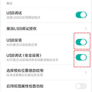 6、若存在【USB安装】和【USB调试(安全设置)】选项,请一并开启。