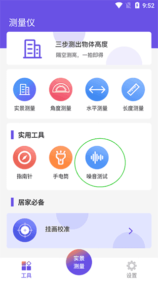 3、若想测量环境噪音,可以在工具栏中选择噪音测试”功能,开启后即可实时查看分贝数值。