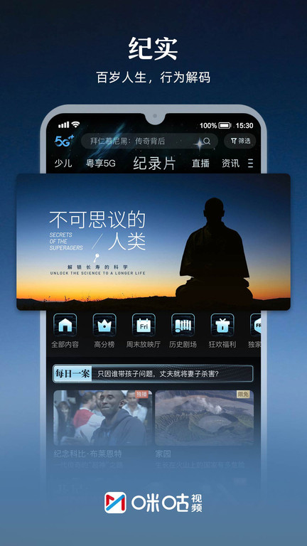 以全民直播、网台互动为特色的综合性直播平台,囊括24小时不间断精彩视频,音频直播,热门综艺,明星秀场等海量节目,与您一起开启全民互动直播时代!咪咕直播将以海量音视频直播内容为基础,以高娱乐性全民互动直播为特色,树立视频行业重度娱乐化产品新标杆。