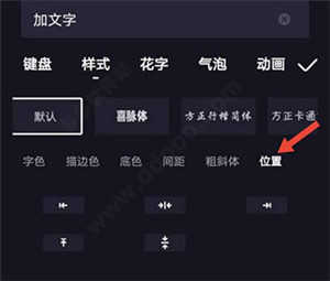 5、点击【位置】,可以把文字调整到视频画面适合的位置上。在度咔剪辑中添加好文字后,点击导出视频就可以了