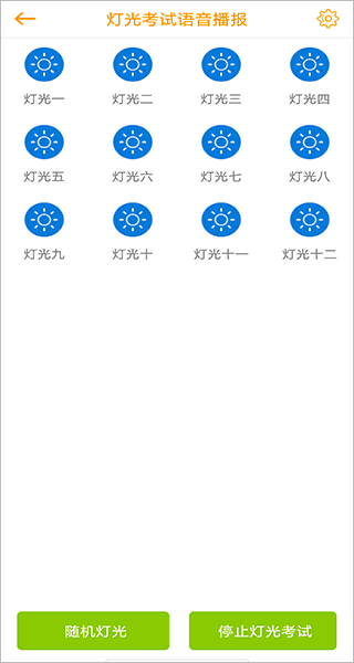 2、选择所需练习的项目,例如科三灯光模拟”,进入后点击对应灯光按钮即可开始语音播报,也可使用随机播报功能进行练习;