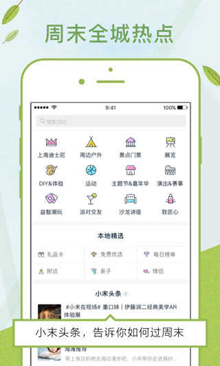 1、【周末不远,乐趣无限】带你探索本地玩法,教你发现新奇体验;省钱又省心,真正实现城里也疯狂”;涵盖同城与周边游,精选内容个性化推荐,有趣又有料;