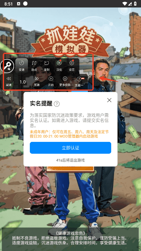 里面有连点、录制、汉化、减速、加速等功能,开启后,即可加速游戏等。