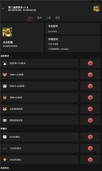 熊二画质助手可一键解锁极限画质与高帧率选项