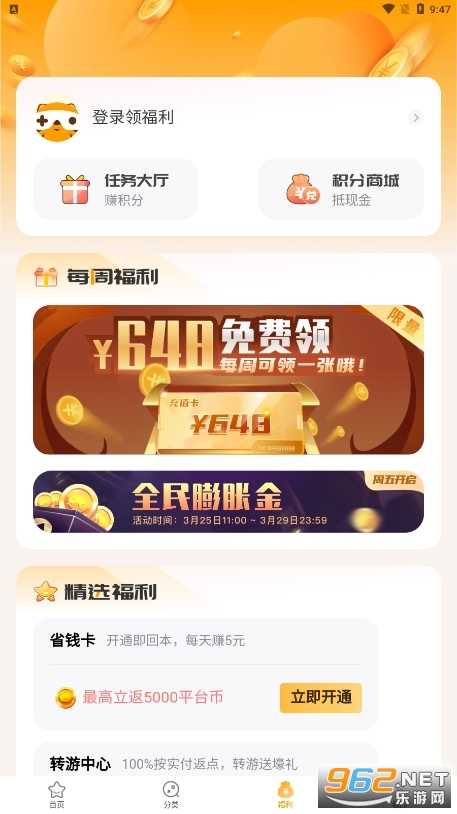 2.清晰直观的手游分类系统,搭配丰富的福利活动等你参与