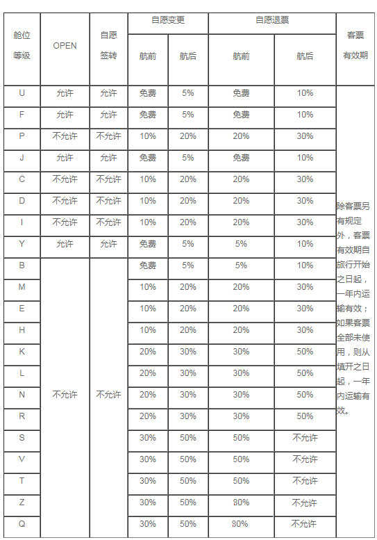 3、只有全价票或头等舱可享受免费退票服务,其他折扣票均需支付一定手续费。例如,4折以下票不可退票,仅退还机场建设费和燃油附加费;5.5折至4.5折票退票手续费为50%;7.5折至6折票退票手续费为20%;8折以上票起飞前两小时退票手续费为5%,两小时内及起飞后为10%。