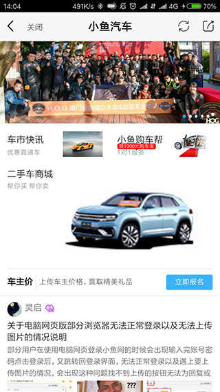 2、若对车辆买卖感兴趣,可点击汽车选项,获取车市动态、二手车商城等详细内容。