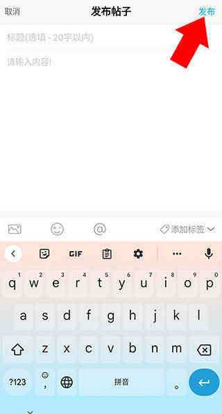 3、撰写帖子正文,在下方添加图片链接或相关标签,完成后点击右上角的发布按钮即可。