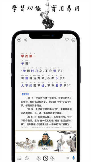 4、正文由白云”老师朗读,部分启蒙内容可选择儿童朗读,译文附带语音功能,适合儿童早教使用。