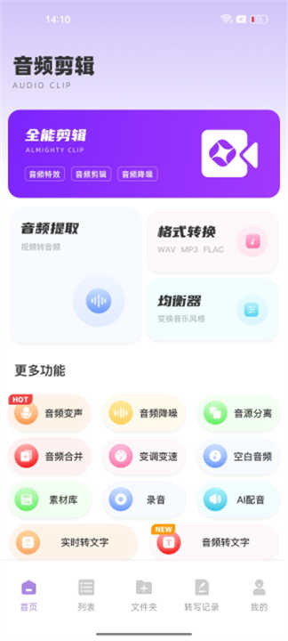 1、打开软件可以发现平台主要以音频剪辑为主,无论是降噪还是为你的音频添加特效都可以轻松完成
