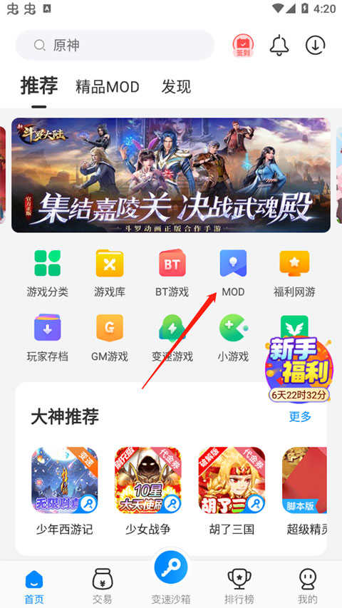 1、在应用首页点MOD按钮。