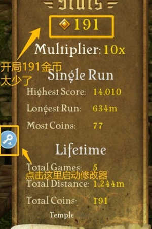 2、如图所示,添加游戏神庙逃亡”之后,点击图标启动游戏。记住,一定要在八门内使用修改器启动才能生效!