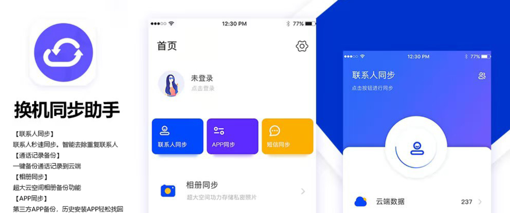 还在为换机后资料难转移,甚至资料丢失而苦恼吗?不妨试试换机同步助手,支持人、APP、短信、照片等资料一键备份还原,轻轻松松换手机,是手机换机同步的必备神器