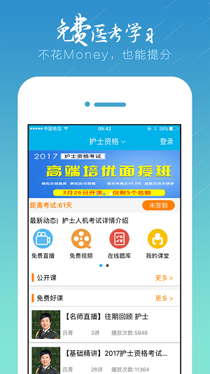1、打开app完成注册,选择你的学习方向,比如医药护技等,系统会为你推荐合适的课程和题库。