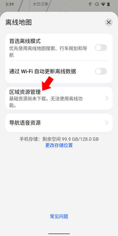 3、在离线地图界面,我们点击区域资源管理选项