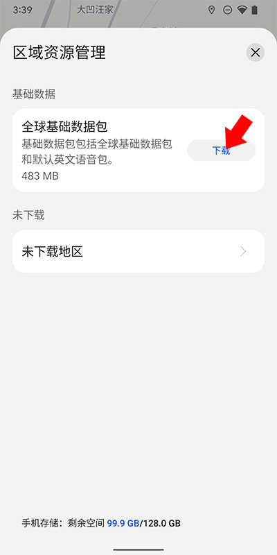 5、安装完基础数据后,点击下方的未下载地区”选项并选择想要下载的地区地图资源即可(注意部分国家地区暂无离线地图资源)