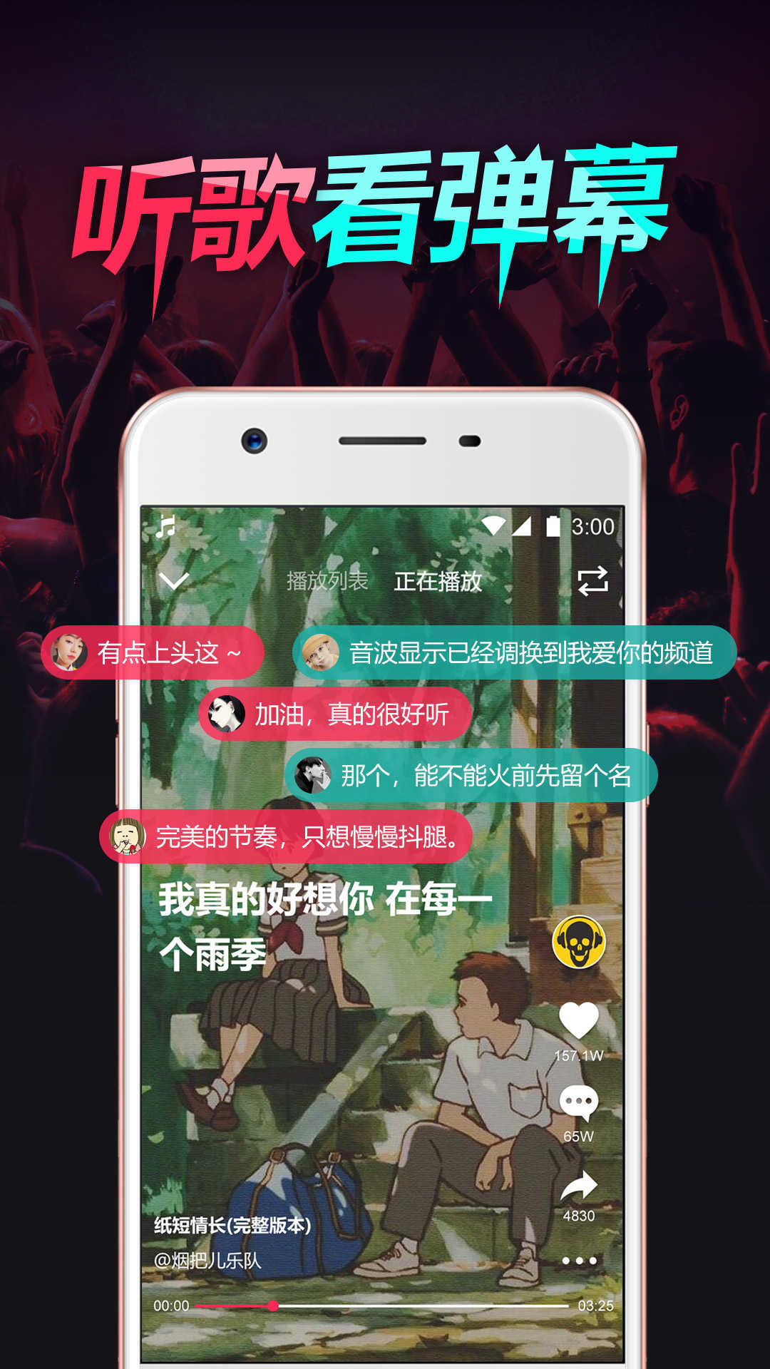 感受最嗨的播放歌曲自然环境;全部的歌曲全是超高质量的;为您强烈推荐人性化的免费音乐;边听音乐边看视频弹幕让您不孤单;多种类型的免费音乐这儿都有;能够享受到视觉效果听觉的双重冲击性。