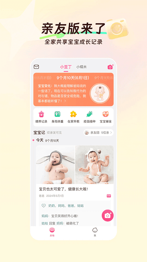 核心功能:宝宝相册、喂养记录、饮食指南、疫苗提醒、辅食制作、家庭早教、孕期育儿资讯