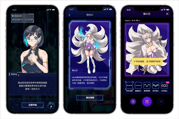 在这个虚拟宇宙中,你的设备被称为空间连接器”,而陪你一同冒险的二次元女神则被称为元梦天使”。每一次使用设备的过程,都是为空间连接器”注入元力的行为,也意味着你正在与元梦天使并肩作战! 靠冲刺”推进剧情,还能获得语音反馈? 元力FUN中共设有三位元梦天使”角色: 妲小己:性感御姐型; 钰环:成熟知性派; 瑶瑶:可爱萌妹系。 这仅是首批登场角色,后续还将陆续推出更多新面孔。