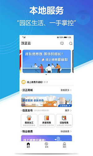 物业费用缴纳,小区住户可足不出户完成物业费、税费、电费等在线支付;信息发布功能强大,可用于发布房屋出租出售、设备租借、大宗采购、招聘求职等相关信息;