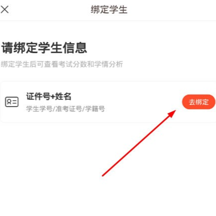 2、进入学生绑定界面,默认状态为未绑定,点击去绑定”按钮以启动绑定流程,如图所示: