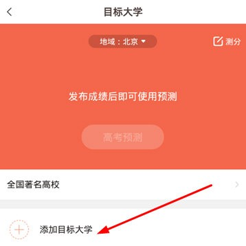 2、进入目标大学设置界面,点击箭头所指区域,可添加或修改目标高校信息,如下图展示: