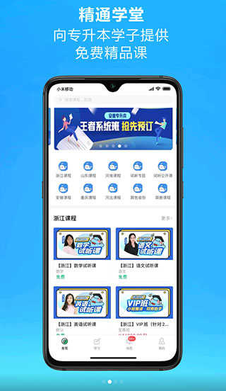 精通学堂app是一款由专业教育团队打造的专升本学习平台,自2026年上线以来,已覆盖山东、河南、河北、安徽、浙江、陕西、江苏、云南等多个省份。平台汇聚了一批经验丰富的全职教师,其中包括众多重点大学的硕士研究生和博士生,他们专注于专升本教学多年,为考生提供高质量的课程资源。
