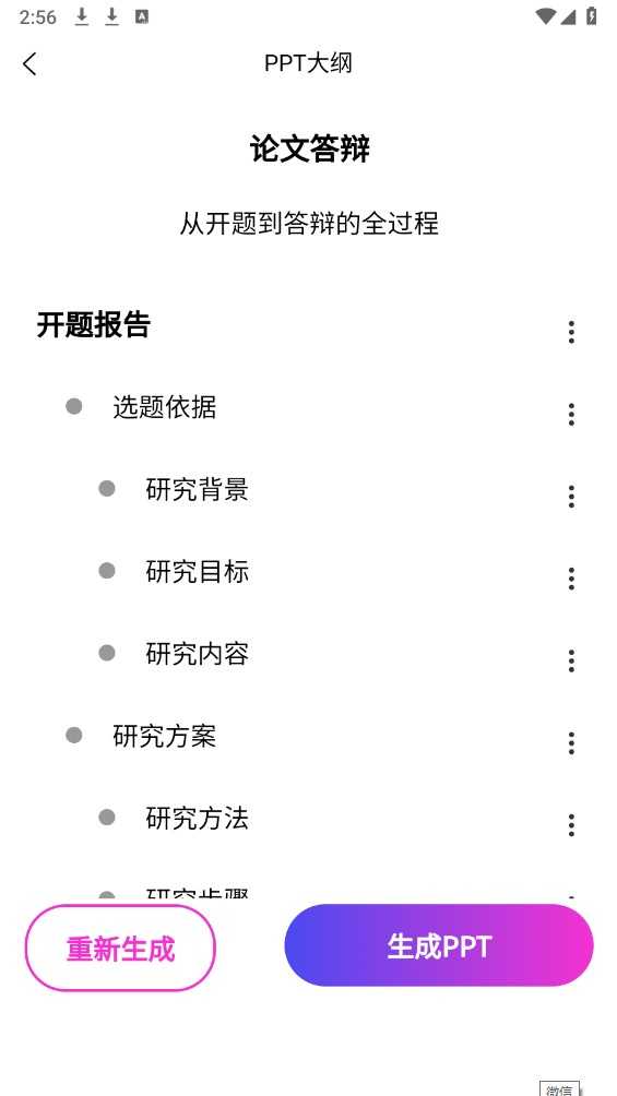 4、确认模板后点击下一步”,系统将生成大纲,用户确认无误即可完成PPT制作。