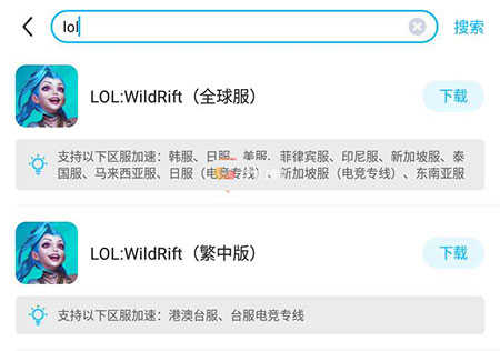 用户可先在应用内搜索LOL”,找到《英雄联盟:激斗峡谷》全球服;