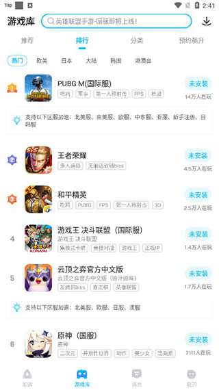 同时,在游戏库中还能看到大量热门手游,包括不少未在国内推出的海外版本;
