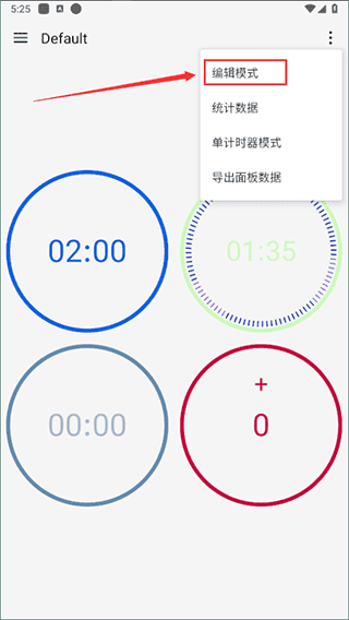 点击右上角更多”按钮,在下拉菜单中选择编辑模式”,即可进入计时器编辑界面。