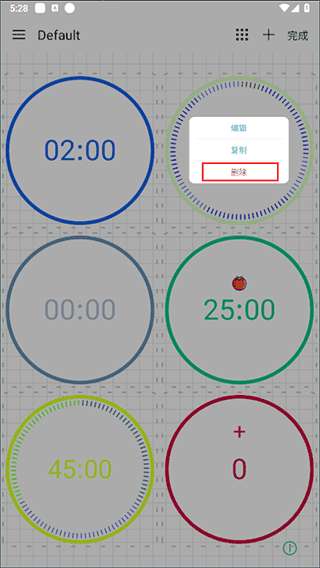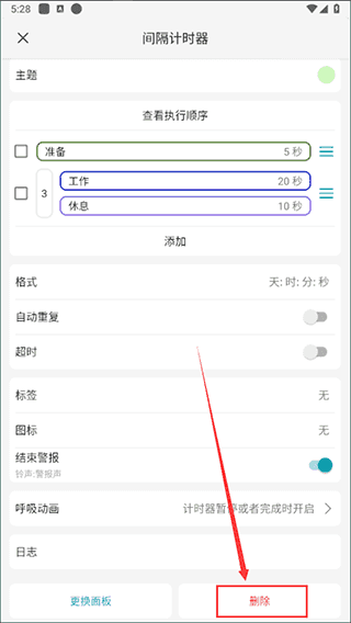 第二种方式是长按计时器进入设置页,滑动到底部后选择删除。