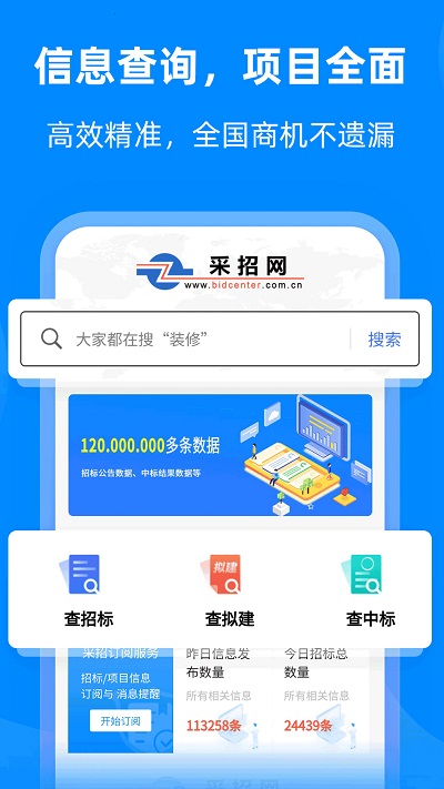 ·海量招标项目搜索,内容与中国采招网网站完全同步