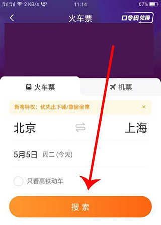 6、根据结果选择合适车次并完成火车票、飞机票或高铁动车票的支付购买