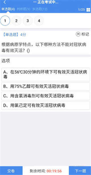 3、根据题目内容进行答题,全部完成后点击【交卷】即可提交答卷。
