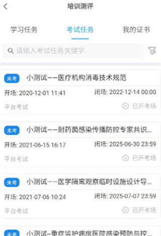 1、在首页中点击【培训测试】模块;