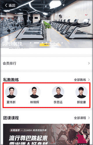 2、随后进入该健身房的详细信息页面,在此页面中选择一位私人教练。