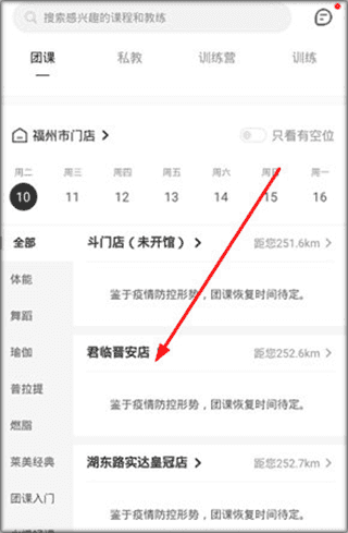 1、首先打开超鹿运动APP,进入课程页面,在这里挑选一家合适的健身房。