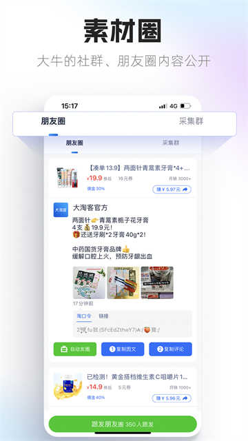 3、商品库:汇聚超过十万款精选商品及千万级高质量文案素材,不仅满足选品需求,更为推广内容创作提供灵感支持。