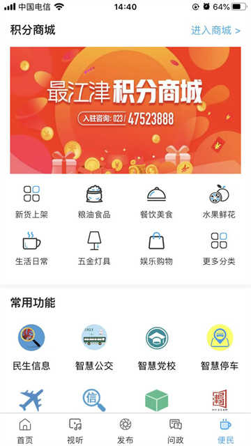 最江津聚合江津网、江津日报、江津电视台等主流媒体资源,实时更新本地时事动态、民生热点图文视频,并精选公众号优质内容。对于重大新闻事件,平台提供24小时不间断推送服务。目前已收录滨江之夏、两会专题、中华魂读书演讲比赛等250多个专题报道,包含300余小时完整活动视频及180多场访谈节目。自2016年起,平台率先在重庆区县客户端中开展大型活动视频直播,至今已成功直播61场,平均每场吸引超40万人次在线观看。