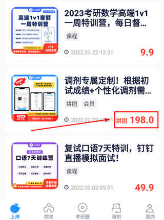 1、浏览课程详情页时,选择标注有拼团”标识的课程。