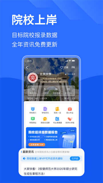 3、院校:可订阅目标院校,实时获取最新招生资讯,不错过任何重要信息。