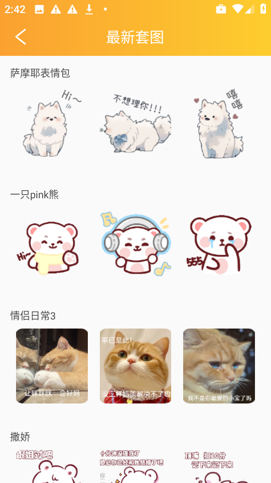 2、进入主页后,会看到最近更新的表情包套图推荐内容。