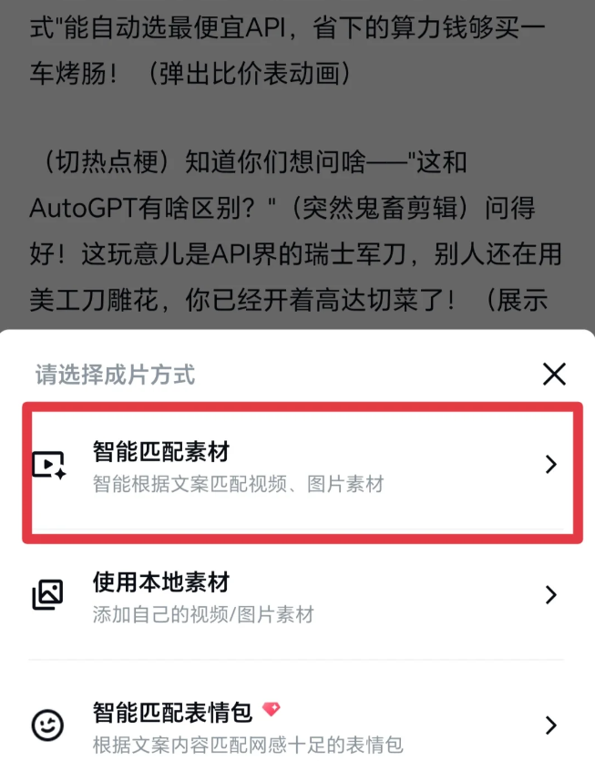 2、将生成的文案复制到剪映中,选择【AI图文成片】功能。