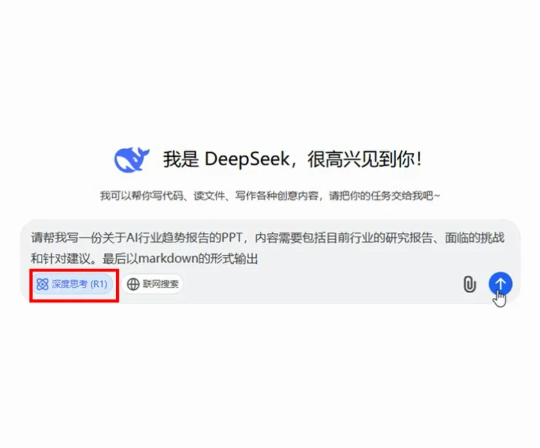 1、首先下载并安装最新版本的深度探索deepseek,启动后选择深度思考”模式进入应用界面。