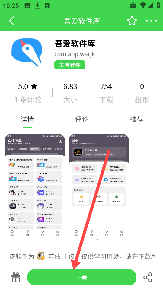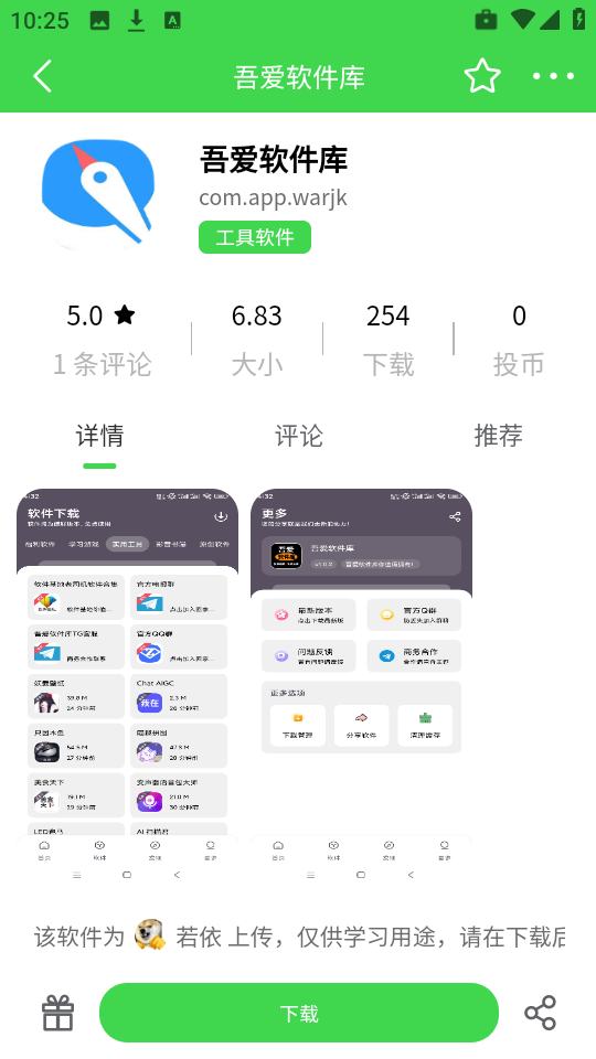 3、从列表中挑选任意一款应用,例如选择吾爱软件库”,然后点击下载”按钮即可开始安装包获取。