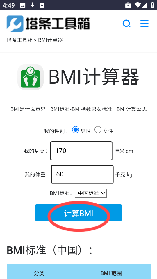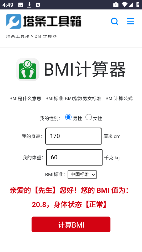 如何利用塔条工具箱计算BMI指数