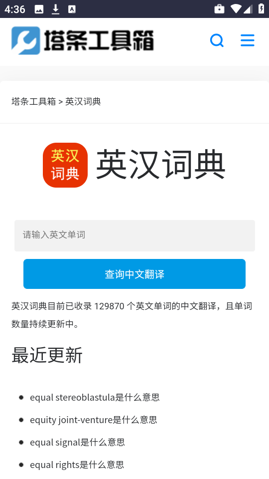 3、于搜索栏内键入目标英文单词,随后点击查询中文翻译”按钮。