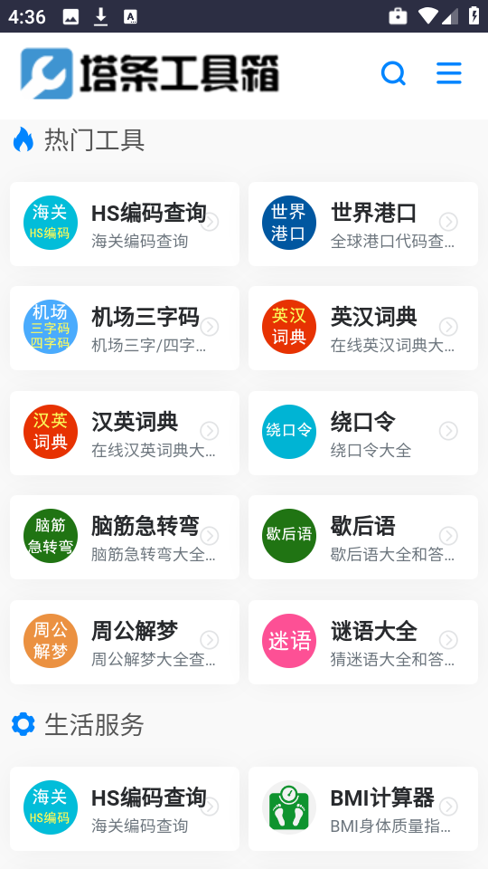 塔条工具箱,汇聚了HS编码查询、英汉翻译、趣味绕口令、传统歇后语、益智脑筋急转弯以及丰富谜语大全等多元化功能。其适用场景广泛,无需任何收费项目,无论是职场精英、求学学生,还是日常使用者,都能借助这一软件提升操作效率与便利性。
