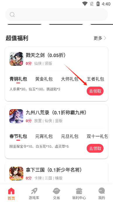 3、进入超值福利界面,可以不定时领取游戏礼包。
